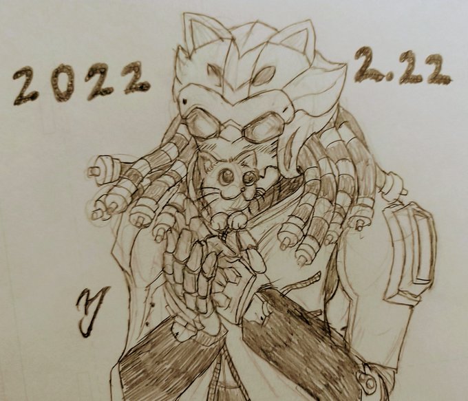 11 21 #特撮版深夜の真剣お絵描き60分一本勝負R ①のガオーンで猫ちゅわんの日! 🦁🐱 練習に打ってつけの企画だ~! 22/02/22 23:34