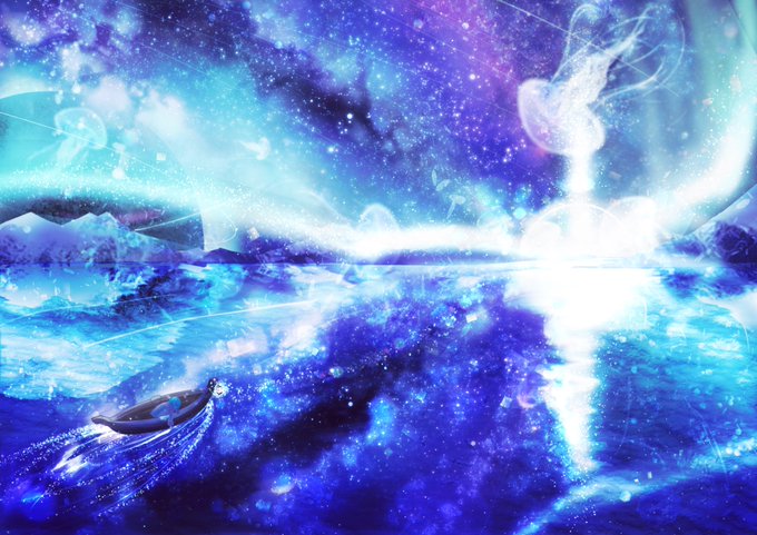 背景画楽しいし妄想捗るし一石二鳥 クリスタ無修正版とインスタに上げた四角と色彩加工版、並べます #絵描きさんと繋がりたい #絵師さんと繋がりたい #絵柄が好みって人にフォローされたい #ファンタジー #星空 #デジタルイラスト
