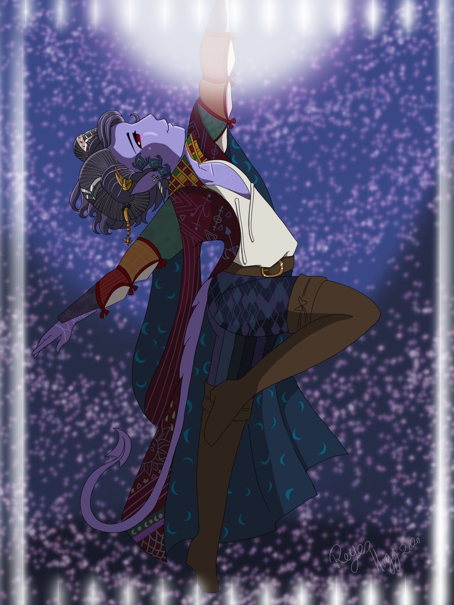 Aura Ravenscroft, my tiefling bard! He isnt the brightest bulb in the pack but he can be sweet sometimes #DnD #dndart #DnDcharacter #tiefling #tieflingcharacter #dungeonsanddragons