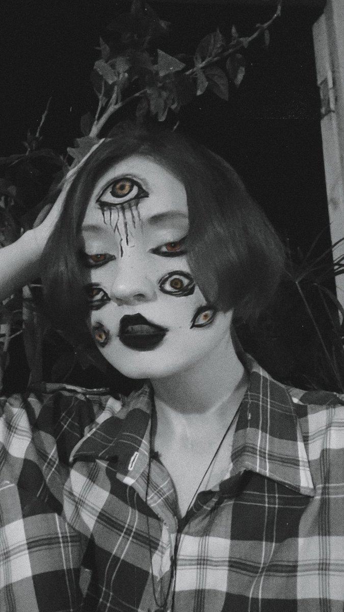 Ну типа такое вот реалистичное подобие глаз , я нарисовала тенью и подводкой 🤡 | #косплей #закосы #грим