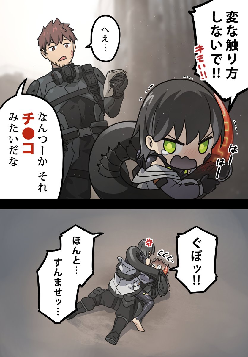 ファングさんは単独行動大好きネコチャンですからね、ネコチャン感覚で構ってくるグリフくんに対しては「なんやこいつ、キモ」って遇らう&放置プレイが基本形です。 twitter.com/ancientmaul/st…