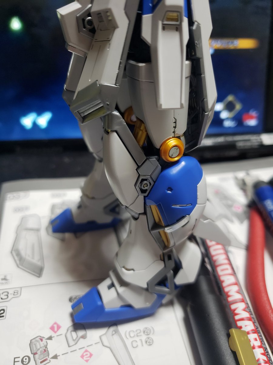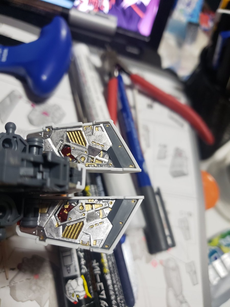#ガンプラ #ガンプラ初心者 ( ・ω・)…えとね、うん( ・ω・)テンション上がりすぎて、脚終わるまで起きてました…休みだからよかった… 取り敢えず、スミ入れと塗装してみました。
