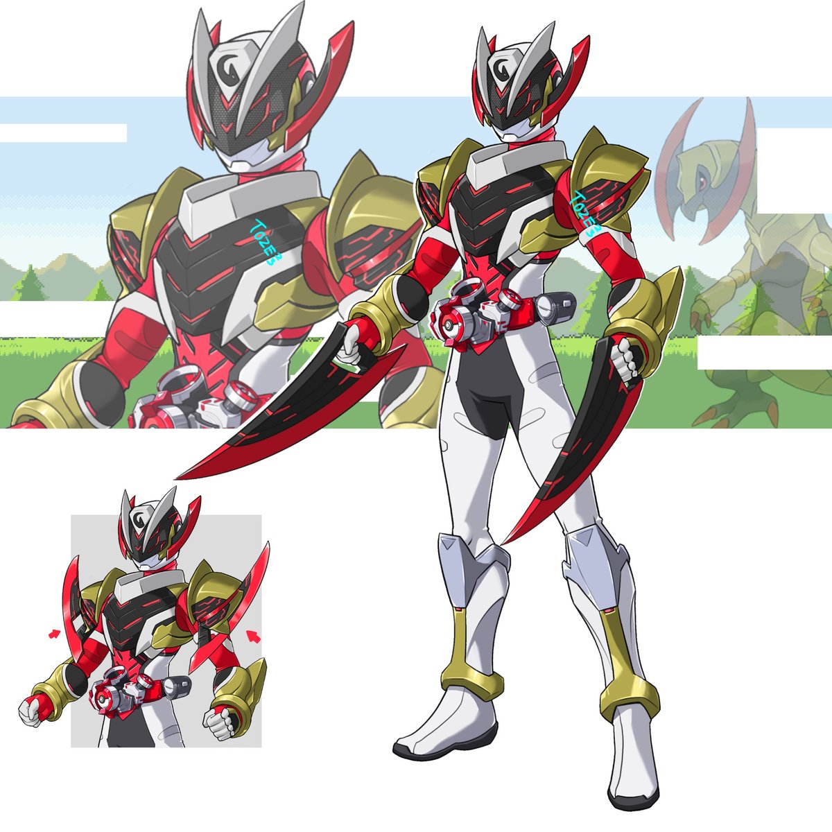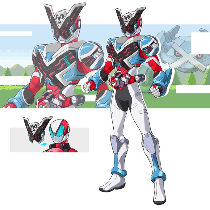 Kamen Rider Rynos Metagross arm-on In this form he's durable as steel type And capable of manipulating psychic abilities.