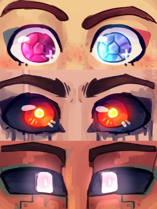 Wanted to do some new life warm-up doodles and it just turned into drawing Oli, Sausage, and Sparrow in New Life's eyes :D #newlifesmp #NewLifeSMPfanart #eyes