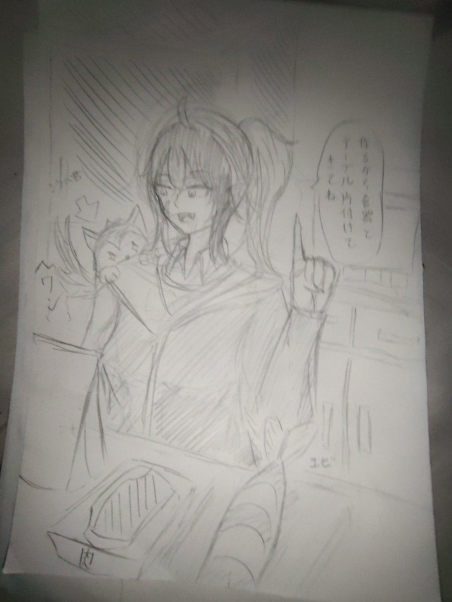 #イラスト #アナログイラスト 一コマ目ラフ完成