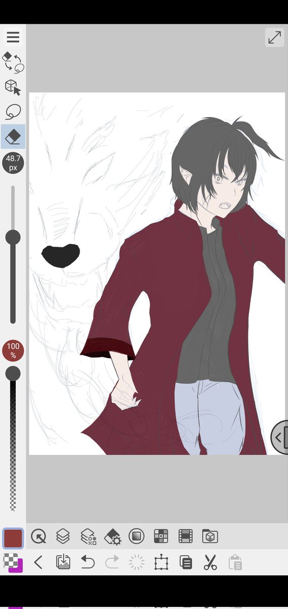 2 8 服装も変わって後は装飾するのみ‼️ 後ろの狼さんもそろそろ塗ってかないとな #イラスト #途中経過 23/04/11 23:11