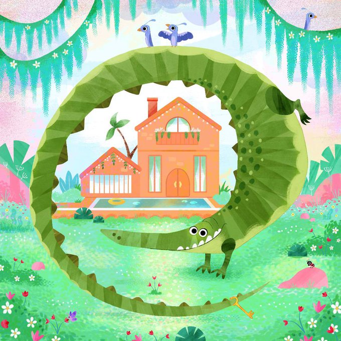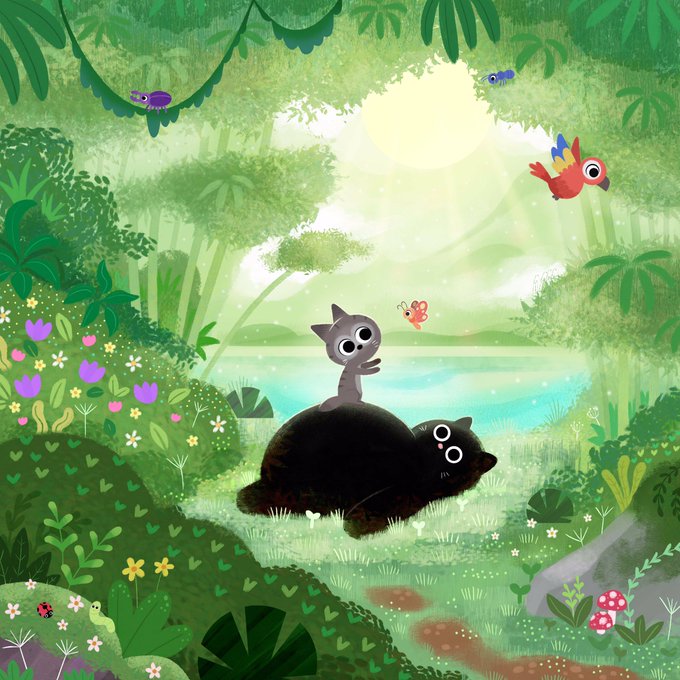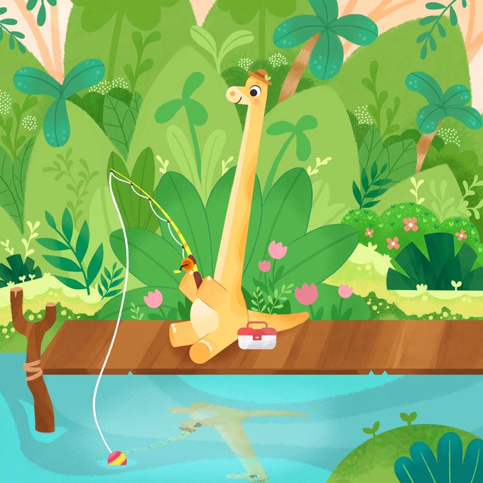Jungle fishing delights ✨ #art #illustration #kidlit #dinosaur #drawing #scwbi #イラスト #illustrationart #kidlitart #childrenspicturebook