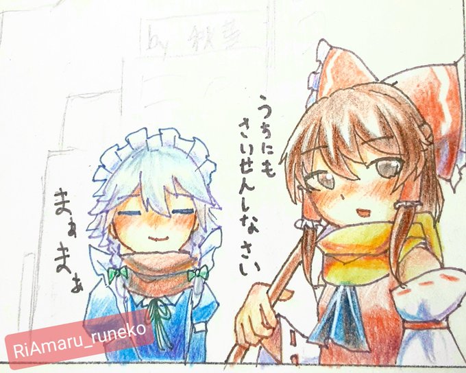3 12 #東方Project #博麗霊夢 #十六夜咲夜 #アナログ絵 #イラスト #色鉛筆イラスト 秋葉行ったときの絵日記 23/01/15 21:22