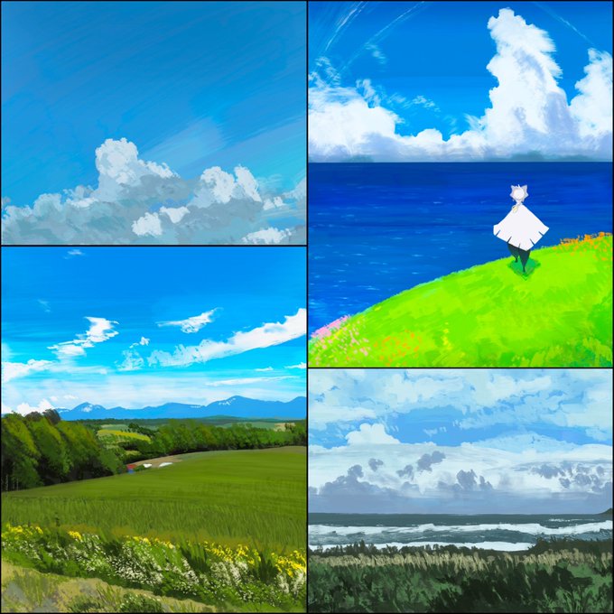 #今月描いた絵を晒そう ラクガキを抜くと今月は7枚!風景画に手を出してみたよ あとはタツマキちゃんにハマった、かわいい!