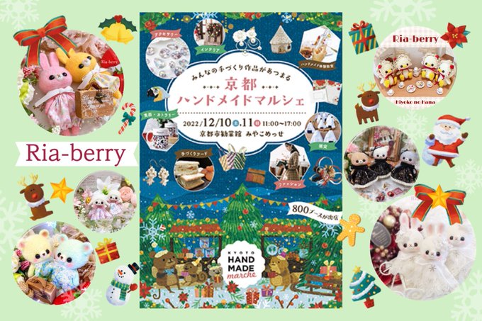 🎪出店情報🎪 ・ 次の出店は、 京都ハンドメイドマルシェ⛩ 12/10-11(土日)11時-17時 みやこめっせにて開催🎉 ブースはD-74です❣️ ぜひ遊びにいらしてください🥰 ・ handmade-marche.kyoto/c/3865 連れてきてほしいコが いましたら、コメントや メッセージください😆❣️ ・ #Riaberry #羊毛フェルト