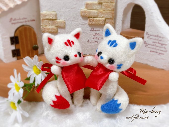 ⛩きつね⛩ ・ やっとデビュー🦊🦊❣️ 赤と青のコ、 京都ハンドメイドマルシェに 連れていきます😊💗 ・ handmade-marche.kyoto/c/3865 12/10-11(土日)11時-17時 みやこめっせにて開催🎉 ブースはD-74です💗 ぜひ遊びにいらしてください🥰 ・ #Riaberry #羊毛フェルト