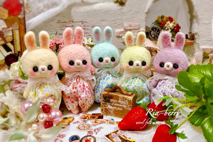 🎀🐰うさぎだらけ🐰🎀 ・ #作品をみてくださいあわよくばフォローしてください祭 ・ #Riaberry です🍓 #羊毛フェルト でかわいい マスコットを作っています😊 ・ お家探し中のコ たくさんいます🏠💐 お気軽に声をかけてください❤️