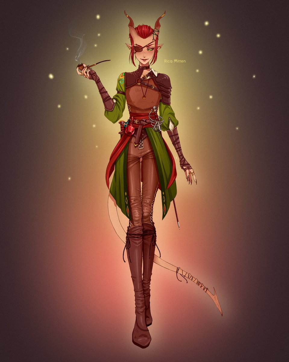 My DnD character Yon from our Fastana DnD party. Passionate and ardent tiefling rogue. One of the main chars of my upcoming DnD comic! #dnd #dnd5e #dndcharacter #dndart #tiefling #rogue #outfitdesign #characterdesign #characterart #illustration #fantasyart #fantasy #conceptart