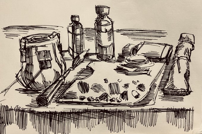 0 2 油絵描いてる時の机大体こんな感じ〜🖼️ #絵 #イラスト #油絵 #ペン画 #ボールペン画 #絵師さんとつながりたい 23/07/16 20:54