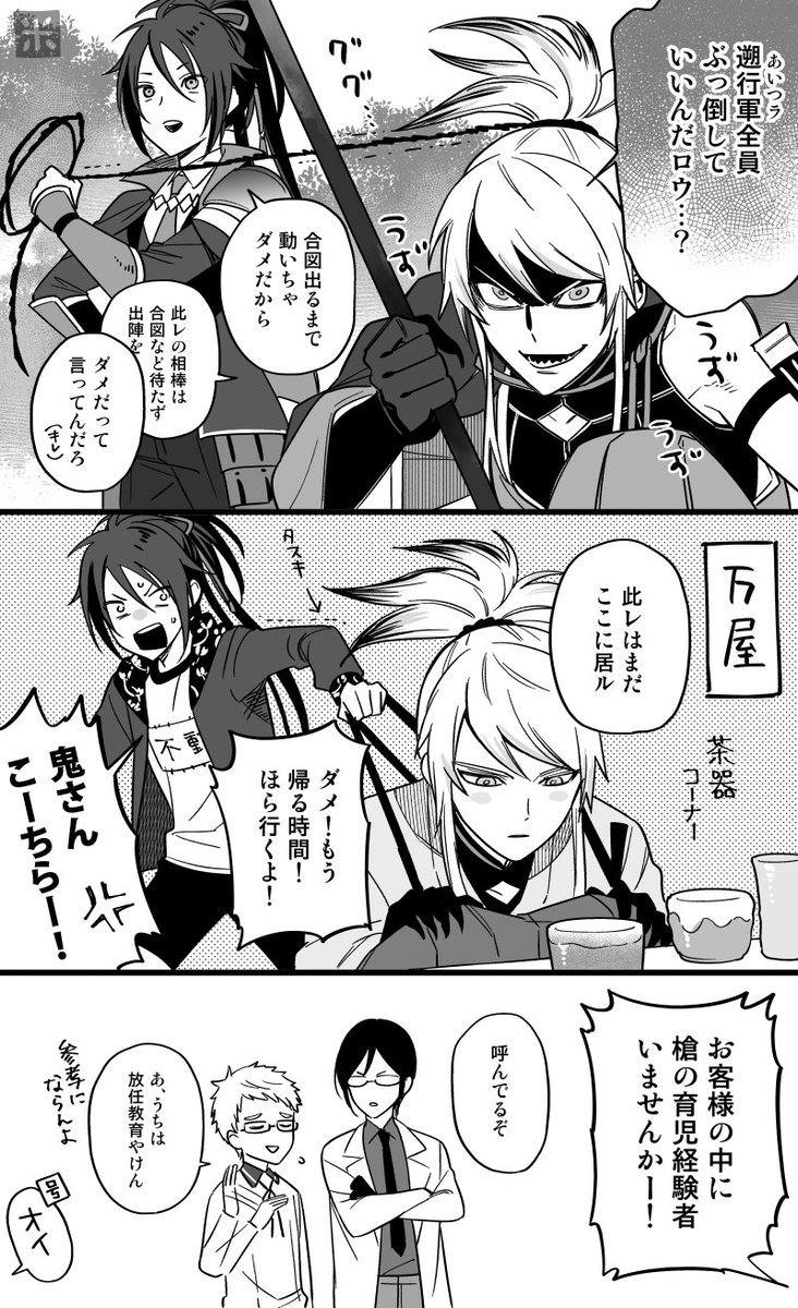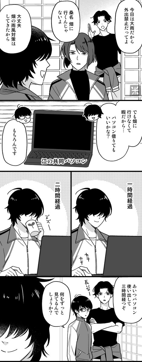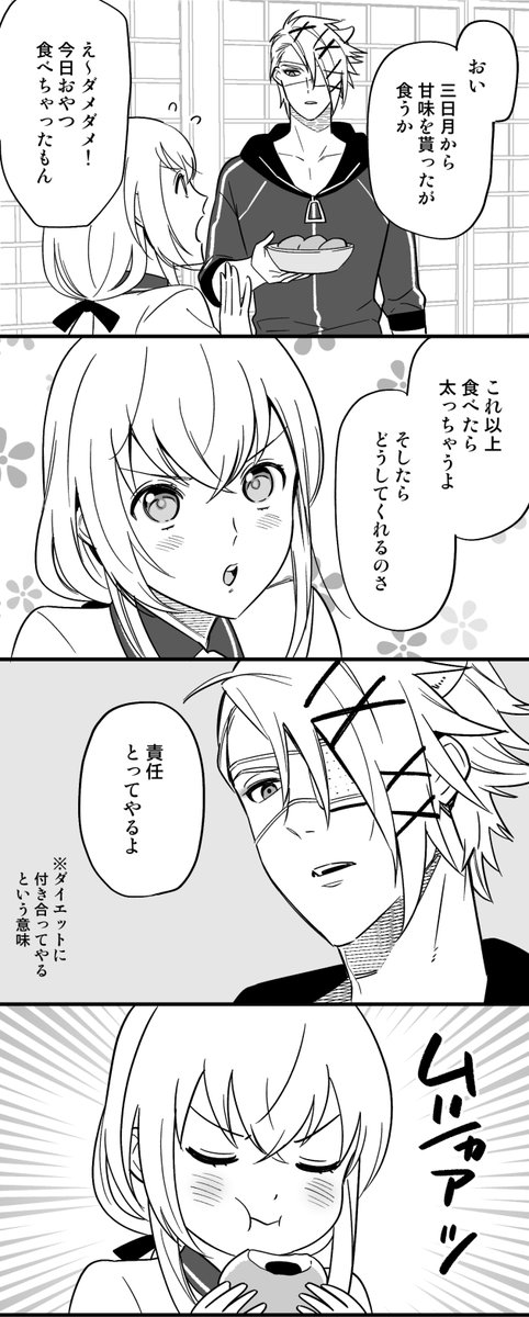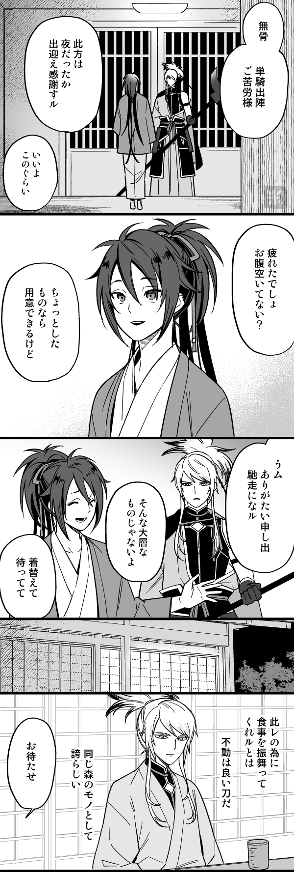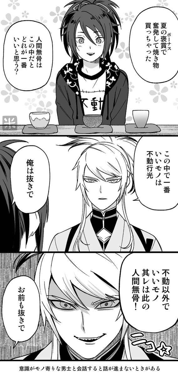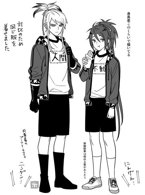 ポイピクにむこふどの漫画置いときます。最近暑いので冷やして食べてください(冷蔵庫メモ) poipiku.com/2159030/887929… ↓これは漫画とは関係ない絵。ふどくんが正面から突進するとふどくんのおでこが無骨のアゴにヒットするぐらいの身長差かなーと思ってる