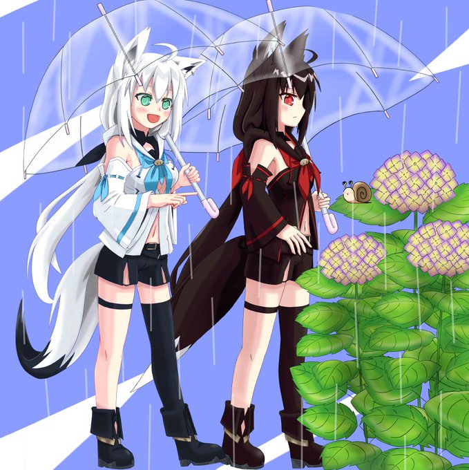 梅雨明けたのによう雨降りますね。 #絵フブキ #白上フブキ #黒上フブキ