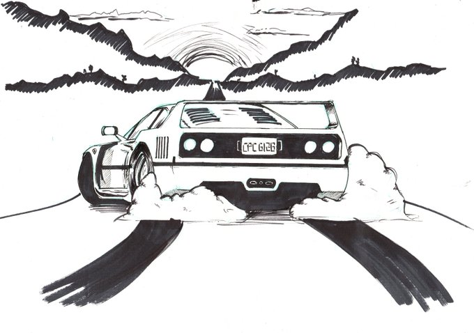 Today's #inktober theme is "slippery". Inspired by last night's episode of Top Gear, I tried to recreate the amazing box art from Crazy Cars 2. Nearly every driving game in the late 80s featured an F40 but this was a game I craved, all thanks to its stunning box art #inktober2020