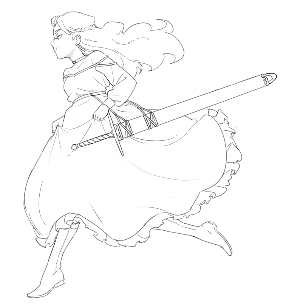 Buff sword girl doodle