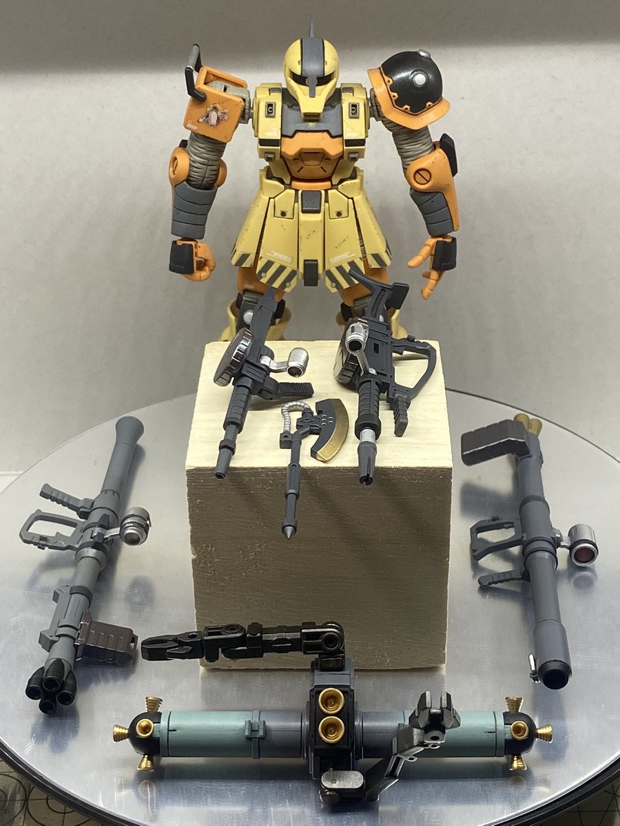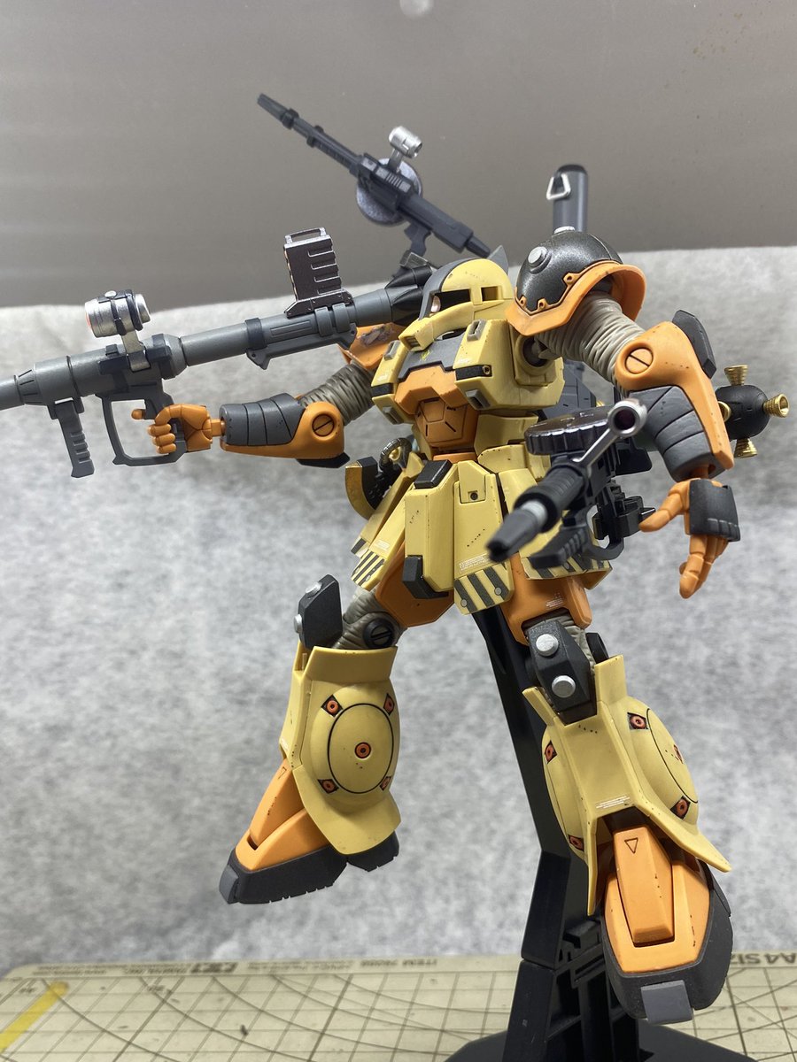 お待たせしました! ザクⅠ(サンダーボルト版)完成です! オリジナル要素が欲しかったのでアームを増設して初期型のザクマシンガンを持たせました!(°▽°)b 本体の成形色がカッコいいキットです! #ガンプラ #ガンプラ好きと繋がりたい