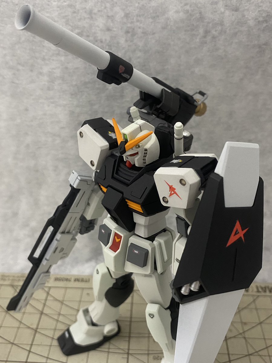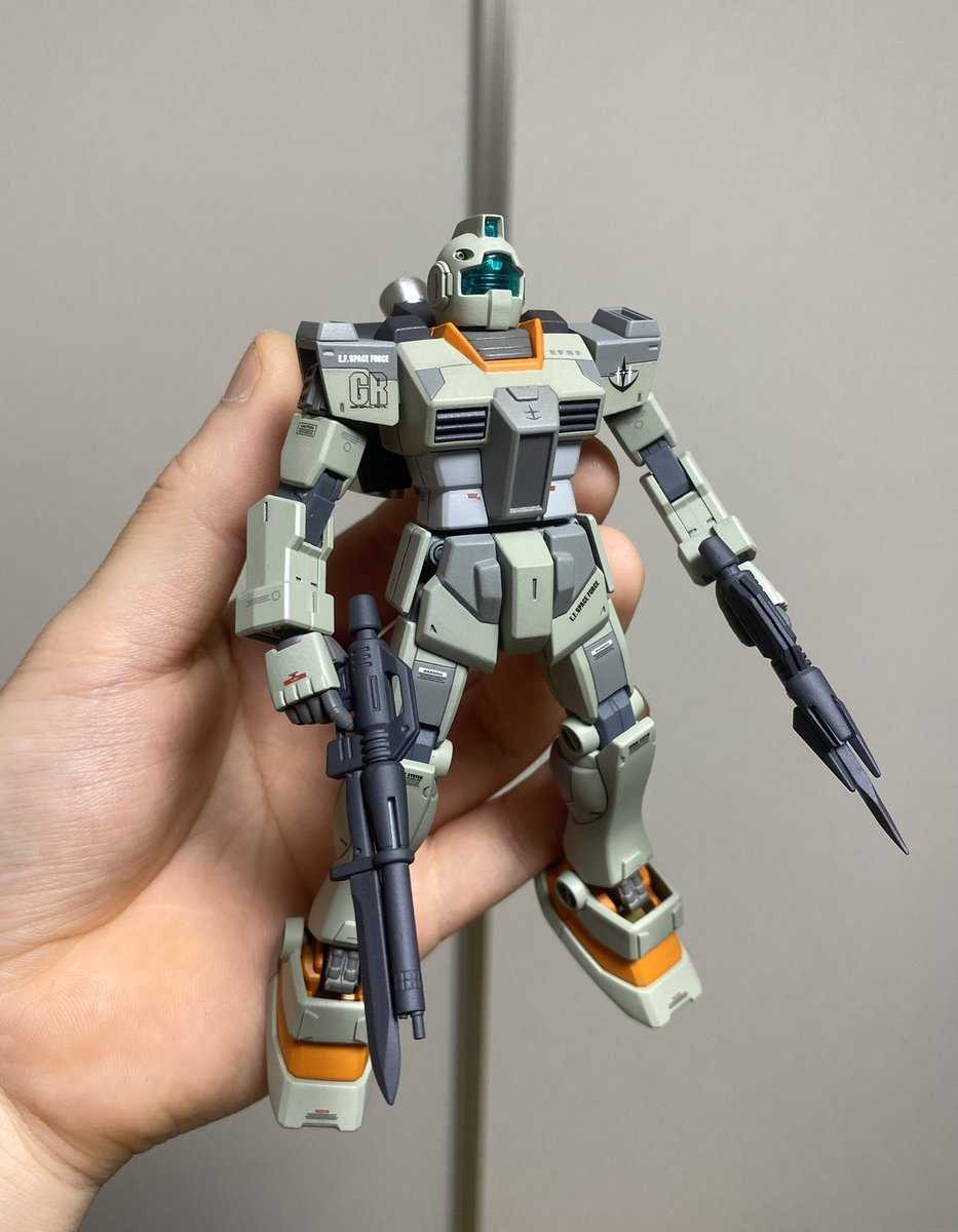 ジム(ゼネラル・レビル予備機)完成です!✨ ゼネラルレビルの度重なるMSの損耗に対し、作業用として稼働していた機体に改修を加え、艦の直衛や味方機の撤退支援等に限定して使用していたという設定です!(*'ω'*) #ガンプラ #ガンプラ好きな人と繋がりたい