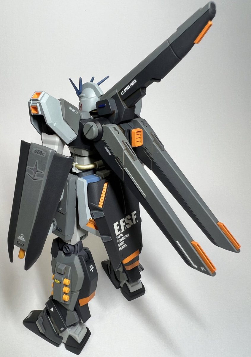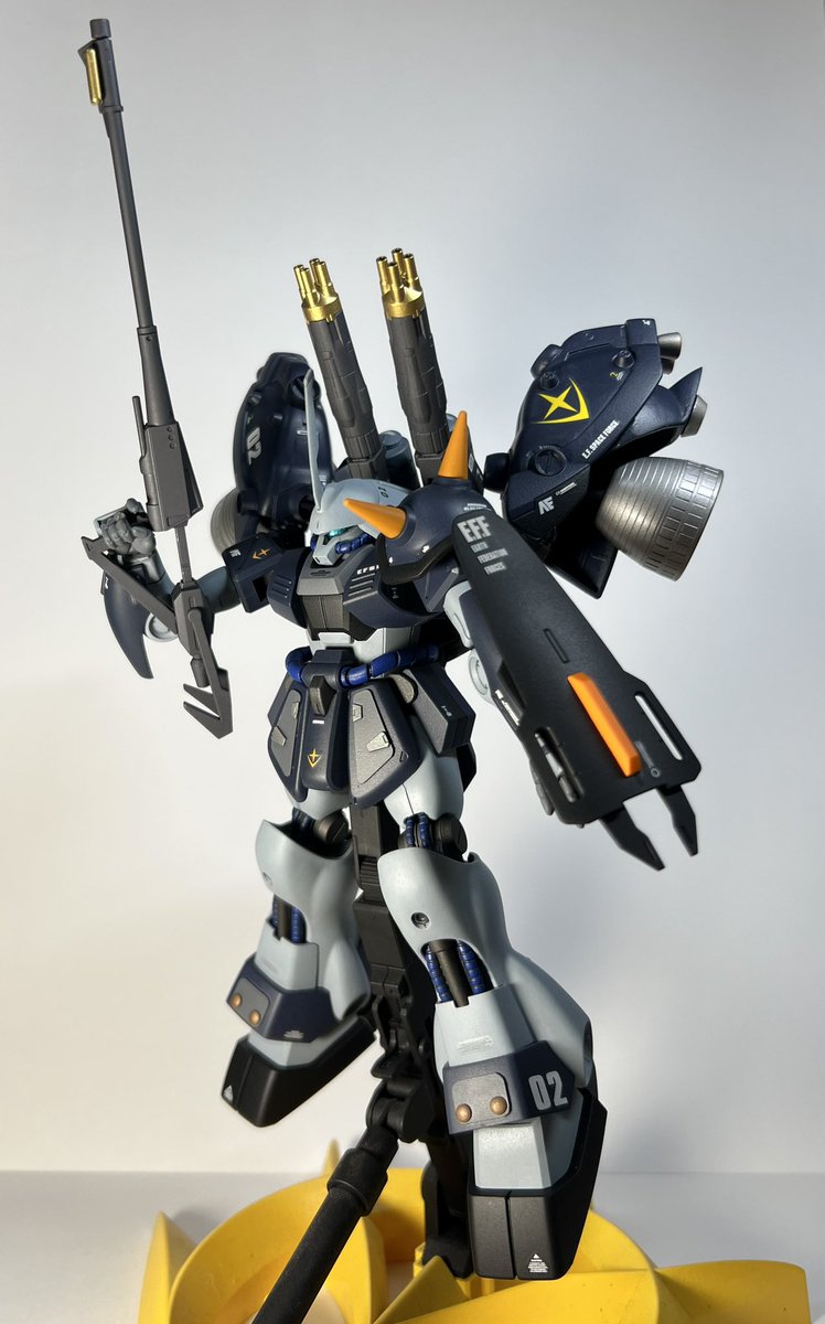νガンダムジェスタ(イアゴ・ハーカナ機)完成しました❗️ νガンダムをジェスタのパーツを使い、イアゴ隊長が一般のパイロットでも扱える汎用機として再生した機体で、エンブレムはイアゴ隊長が影響を受けた人から付けている設定です!٩( 'ω' )و✨ #ガンプラ #俺達のEGガンダム