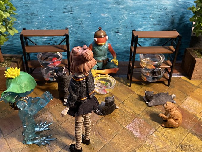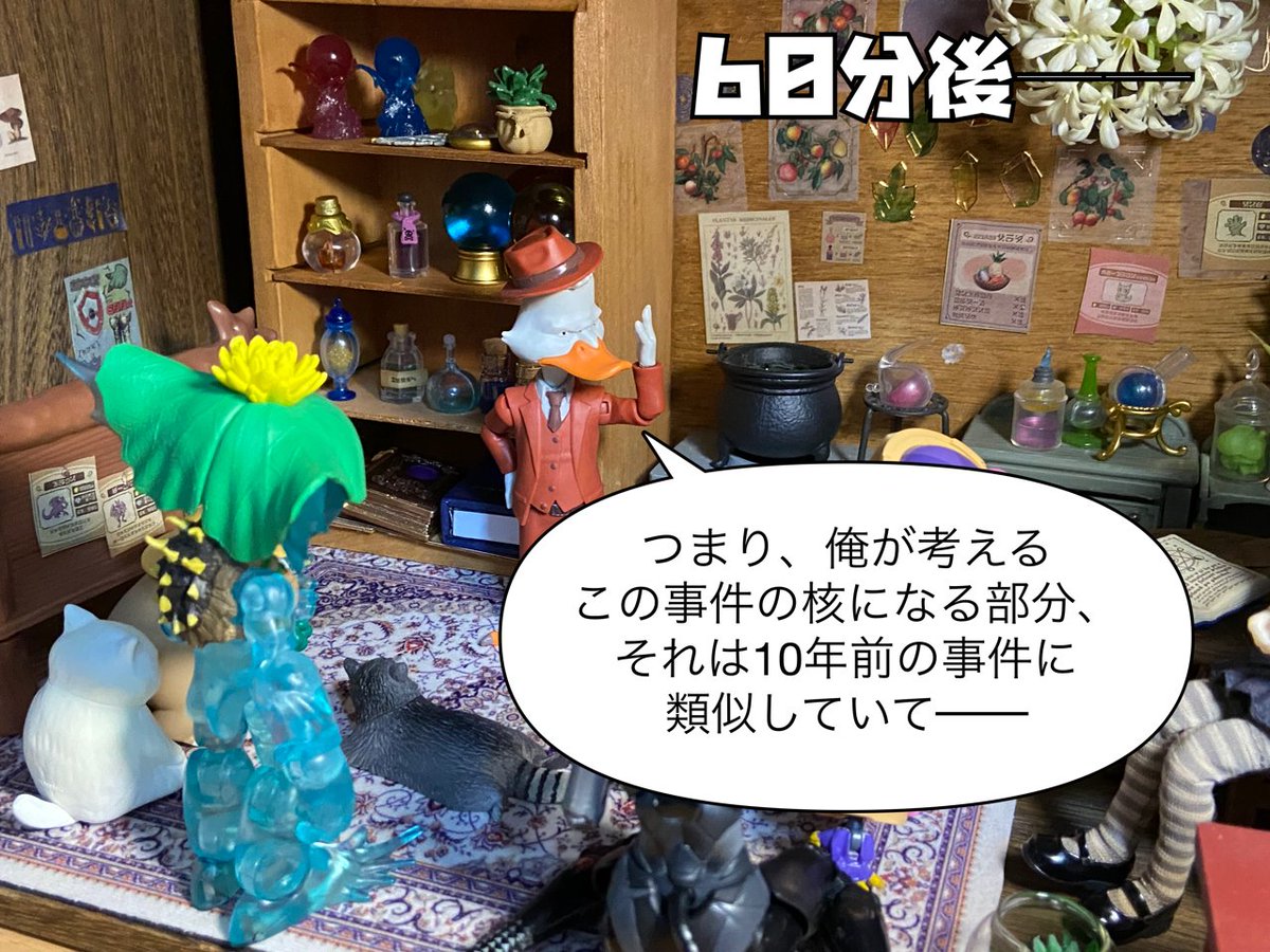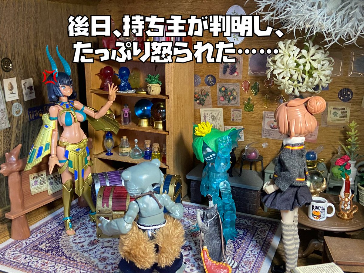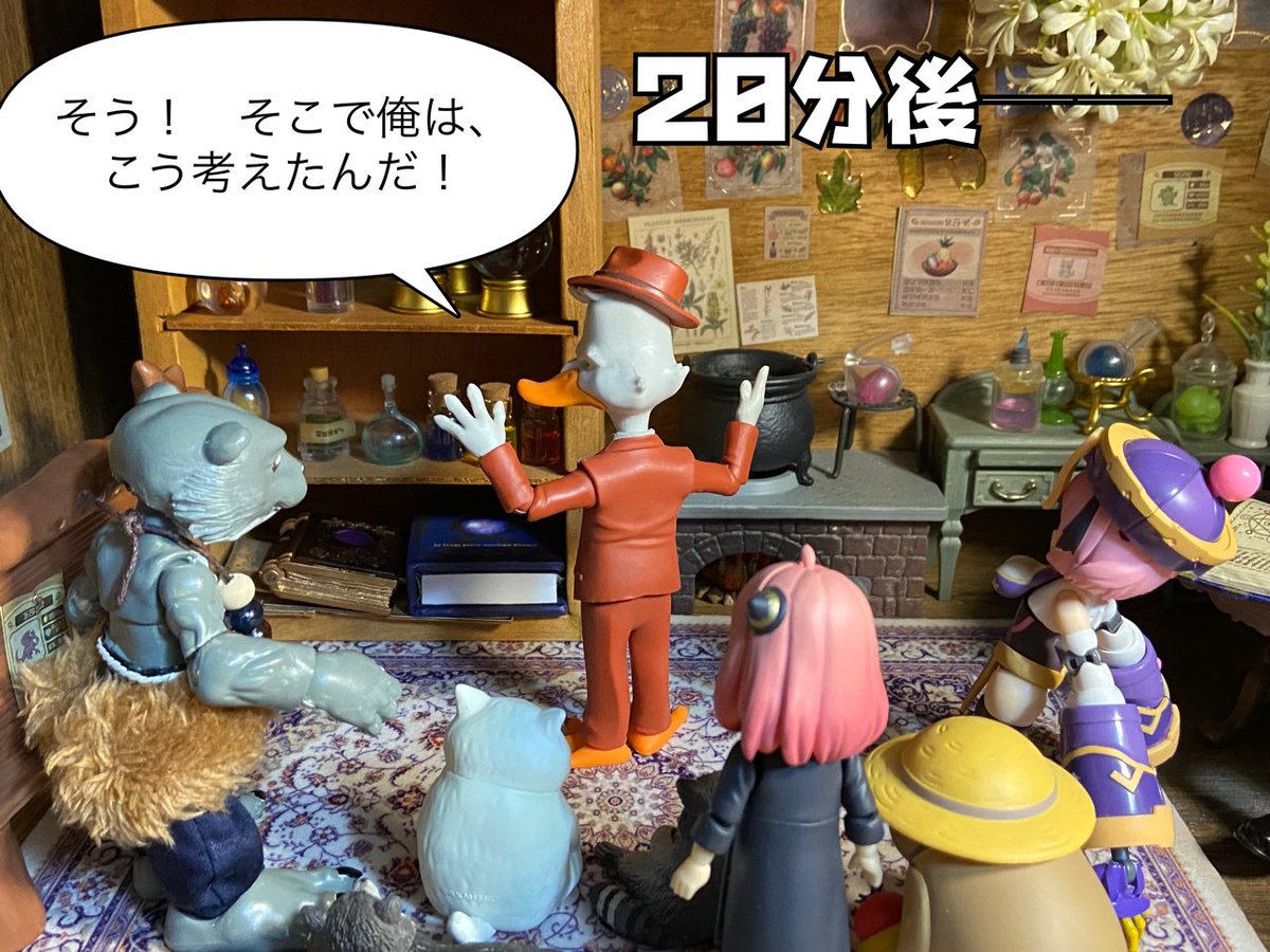 7/20 テーマ「占」 「争いの相が出てるっすね」 「なんじゃそりゃ?」 「今日は喧嘩に巻き込まれないよう 大人しくした方がいいっすよ」 「(……ラプ子の占い当たったなぁ……)」 #おもちゃ撮影会