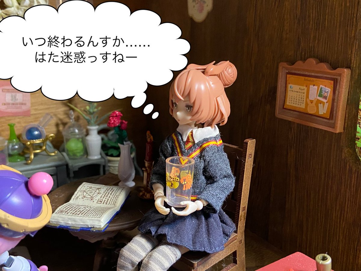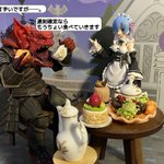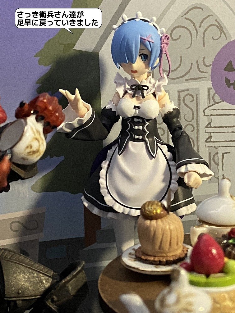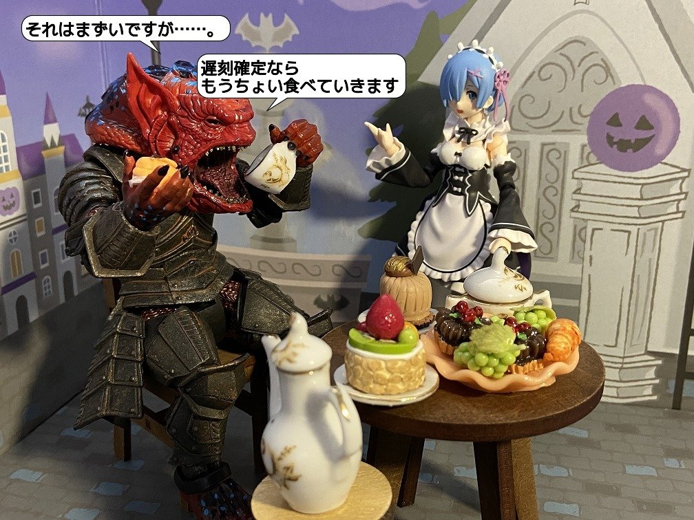 07/29(木) テーマ「お菓子」 「お昼休み終わっちゃいますよ」 「まだ、大丈夫ですよね?」 「さっき衛兵さん達が足早に戻っていきました」 「それはまずいですが……。 遅刻確定ならもうちょい食べていきます」 #おもちゃ撮影会