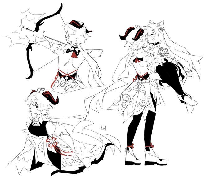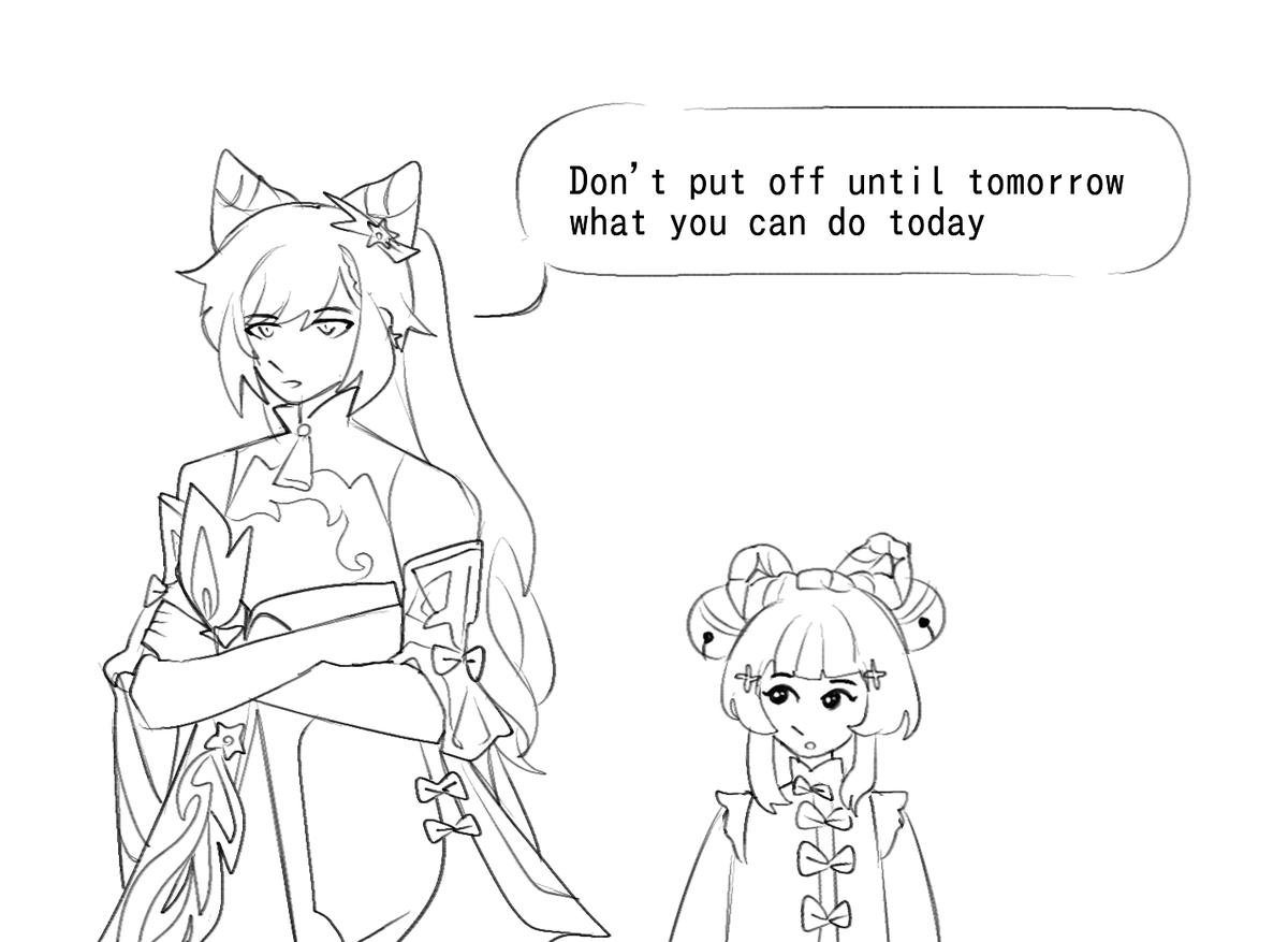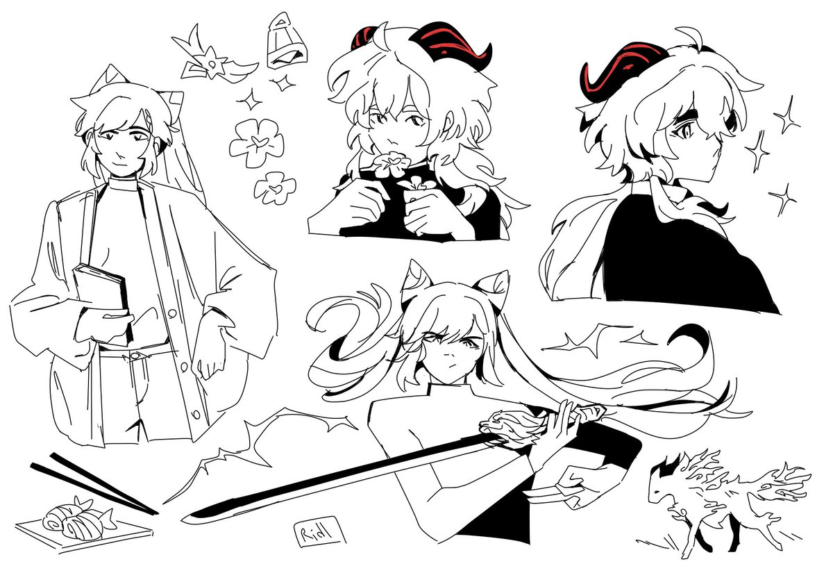 357 1744 #ganqing since i'll be getting c6 soon, here's doodles of ganyu showing off for her wife :) 23/04/29 06:37