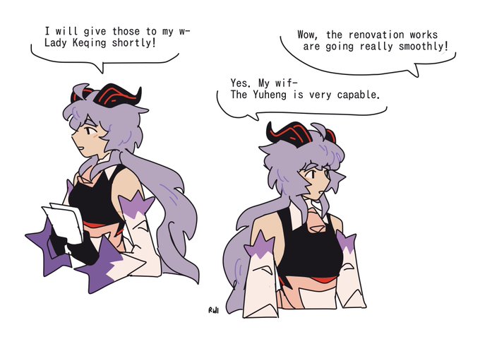 #ganqing since i'll be getting c6 soon, here's doodles of ganyu showing off for her wife :)
