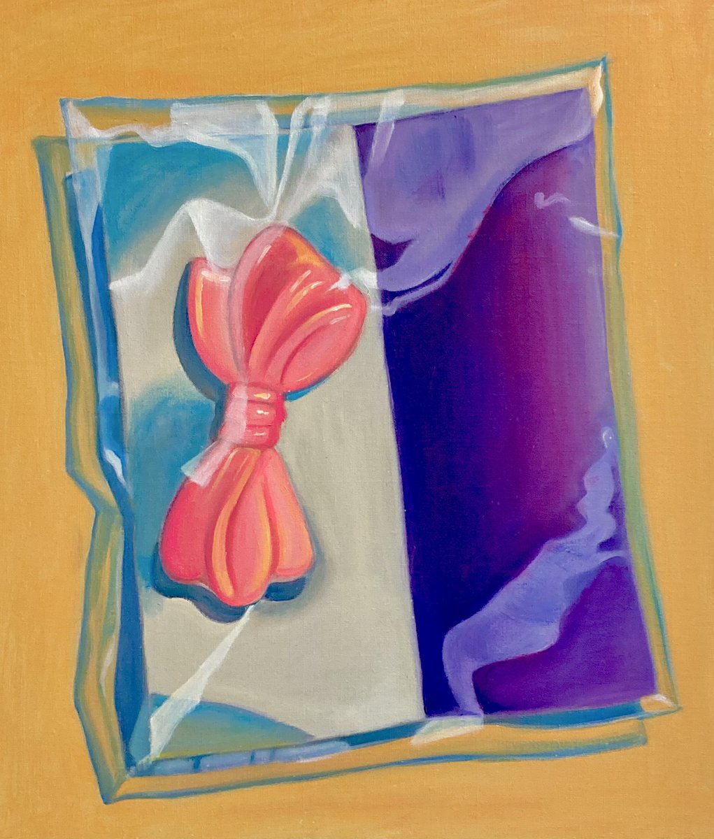 Pinky ribbon 油彩 F10 2022年制作 院生展にて展示したシリーズ作品 可愛いくてキッチュな子供っぽさがテーマです🌼 #絵画 #イラスト #油絵 #art #illust #oilpainting