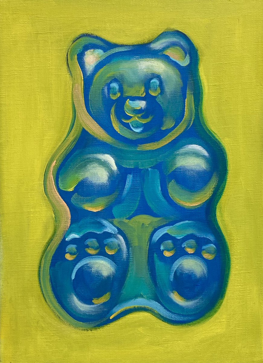 Gummy bear 油彩 F4 2022年制作 院生展にて展示したシリーズ作品 可愛いくてキッチュな子供っぽさがテーマです🌼 #絵画 #イラスト #油絵 #art #illust #oilpainting