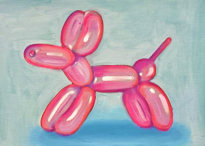 0 12 Balloon dof 油彩 F4 2022年制作 院生展にて展示したシリーズ作品 可愛いくてキッチュな子供っぽさがテーマです🌼 #絵画 #イラスト #油絵 #art #illust #oilpainting 22/10/06 18:50