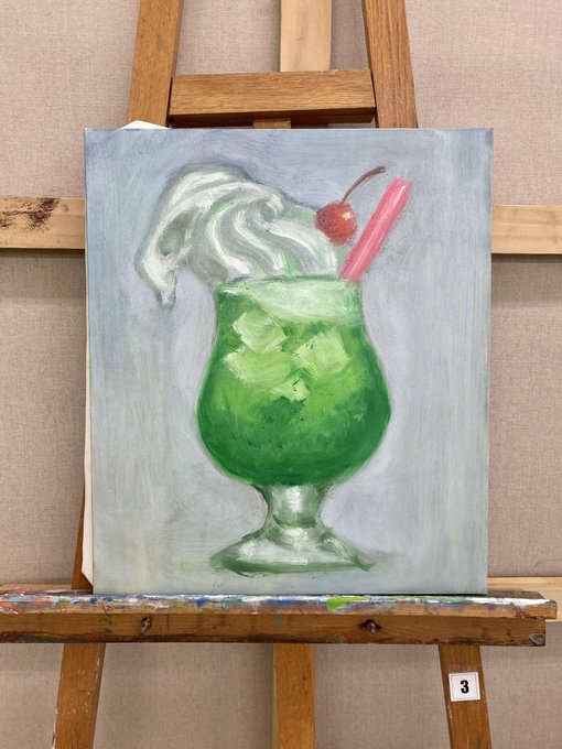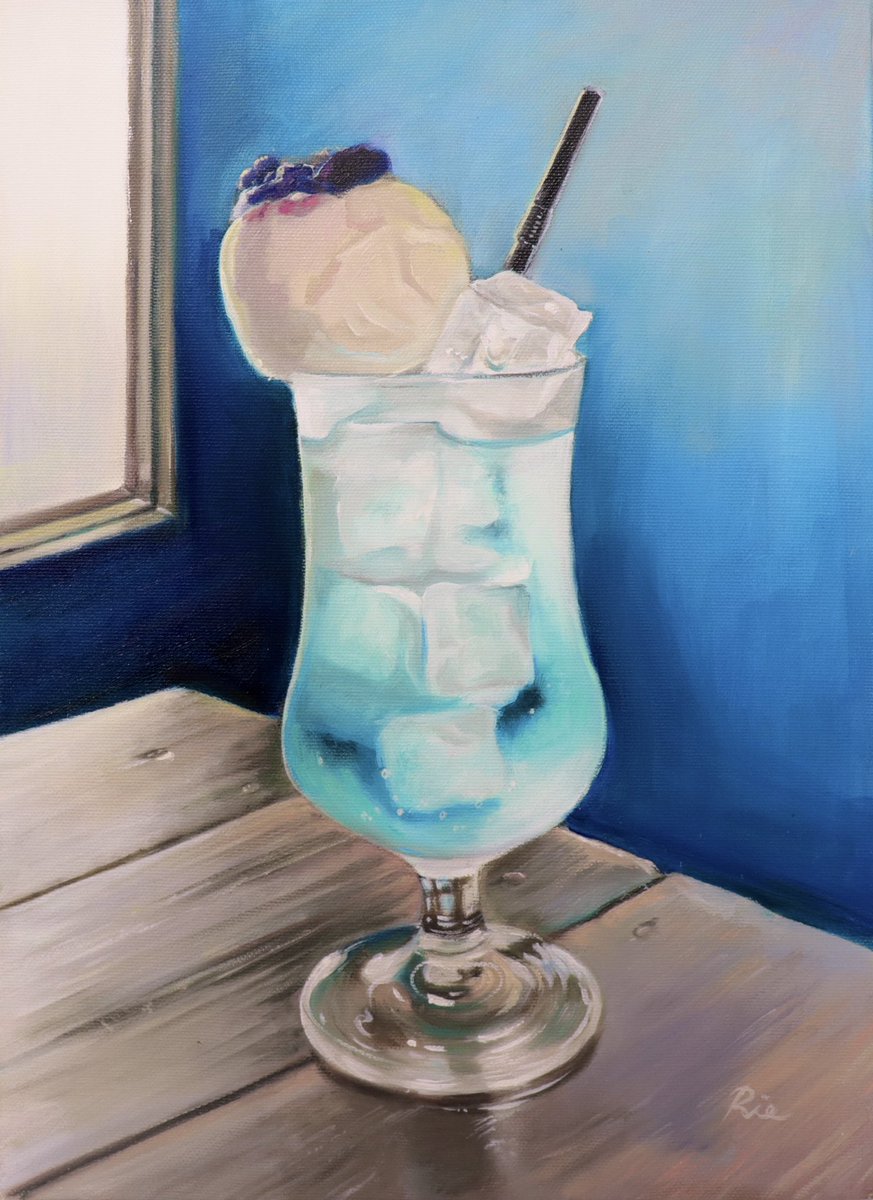 4 13 しゅわしゅわブルー 友達と飲んだ青い夏の味💠 #絵画 #油絵 #art #oilpainting 23/02/09 20:10