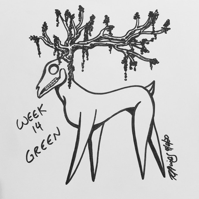 Also made a more abstract zombie deer for #inktober52green #inktober #inktober2020 #inktoberweek14 #inktober52 #traditionalart #skull #skulldrawing #vultureculture #skookyart #zombie #zombiedeer #inktoberskull #deerskull #skullantlers #antlers #deerantlers #spookynature