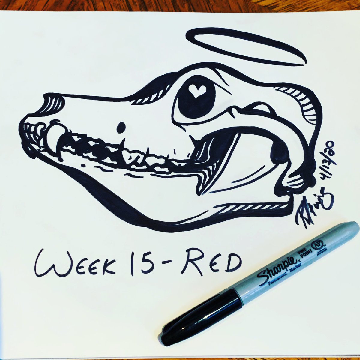 #RIP #cliffordthebigreddog for this week’s #inktober52, themed red. Really happy with this one. #inktober #inktober2020 #inktoberweek15 #inktober52red #traditionalart #skull #skulldrawing #vultureculture #dogskull #inktoberskull #angeldog #alldogsgotoheaven #blackandwhiteart