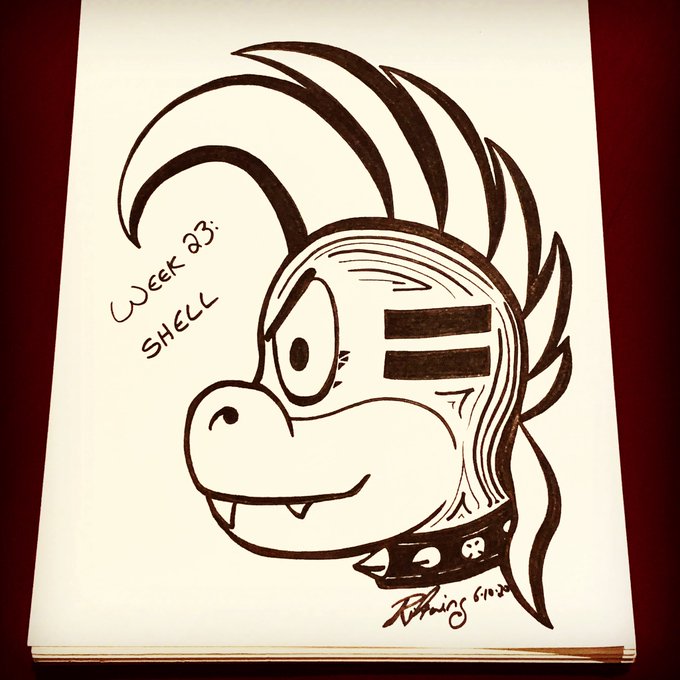I chose a #Koopa shell as inspiration for this week’s #inktober52shell. Here’s my favourite #Koopaling, #Lemmy, all grown up and more #punky! #inktober #inktober2020 #inktoberweek23 #inktober52 #lemmykoopa #traditionalart #koopalings #koopakids #traditionalart #punk #nintendoart