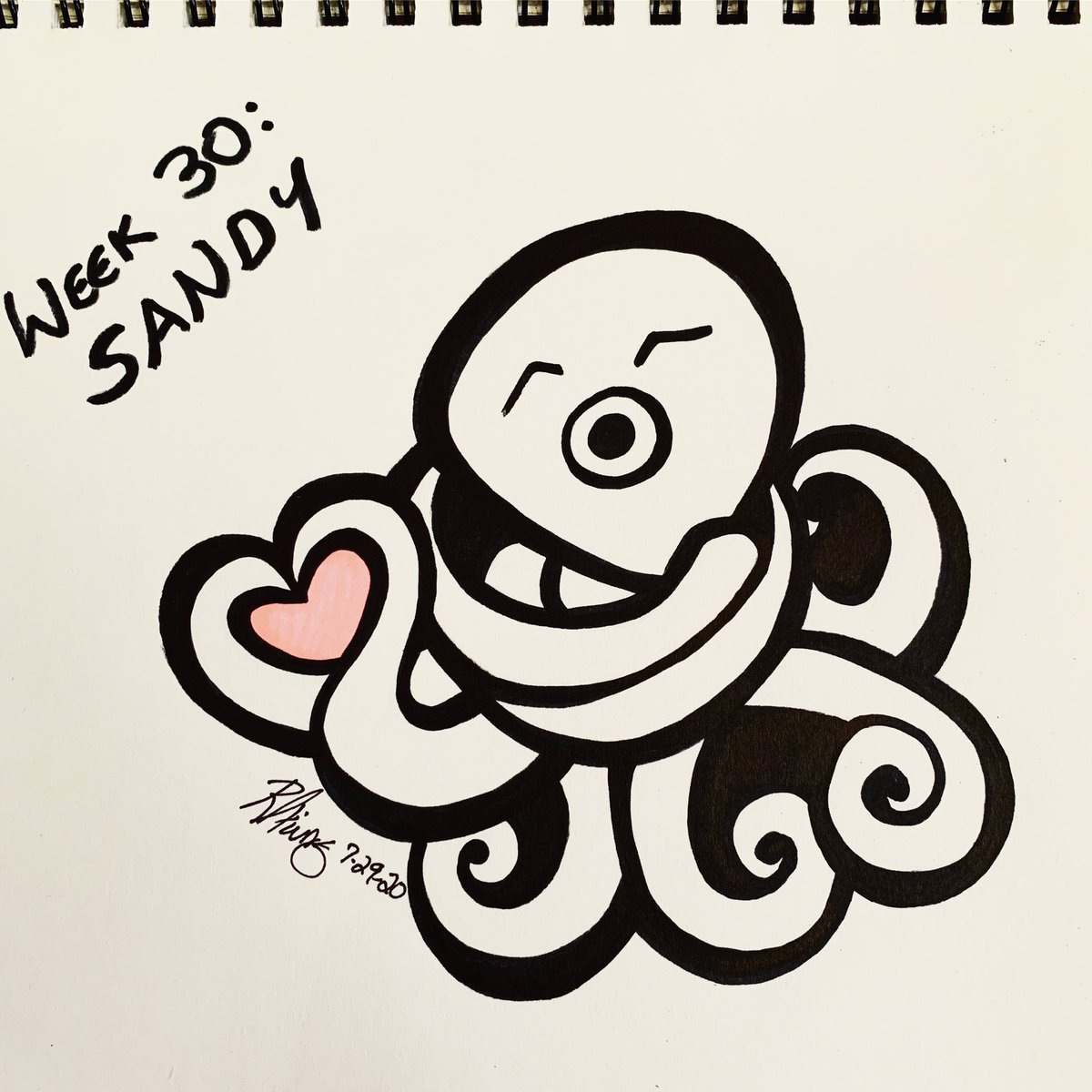 Staying on the cute train for #inktober52 sandy theme! #inktober #inktober2020 #inktoberweek30 #inktober52sandy #octopus #octo #octoart #octopusart #octopusdrawing #traditionalart #blackandwhite #blackandwhiteart #cuteoctopus #octopusheart #octopuslove #octopuslover