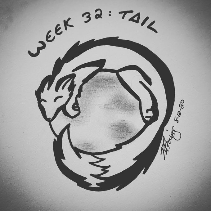 Tried a moon version of a #Fox and tail for this week’s #inktober52, kind of the lazy lunar version of the #Firefox logo? #inktober #inktober2020 #inktoberweek32 #inktober52tail #traditionalart #blackandwhite #blackandwhiteart #foxart #foxandmoon #foxcircle #foxmoon #foxlogo