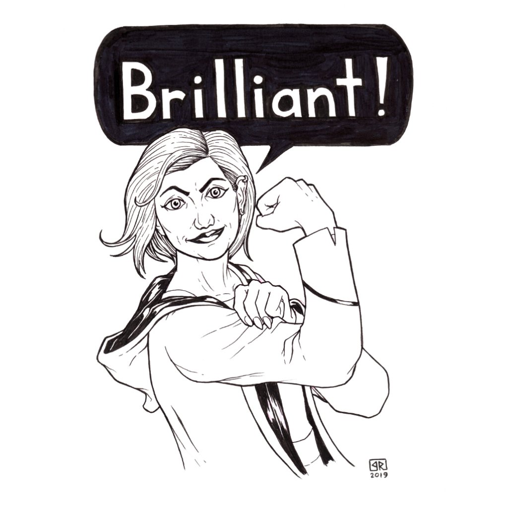 #InktoberReboot Day 22 is #TheDoctor . I hope I did #JodieWhittaker and the #13thDoctor justice. #inktober2019 #Inktober #RiggerArt #RosieTheRiveter #DoctorWho #bbc #TVArt #Fanart #Drawing #Scifi #Art #ink #ArtistOnTwitter