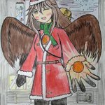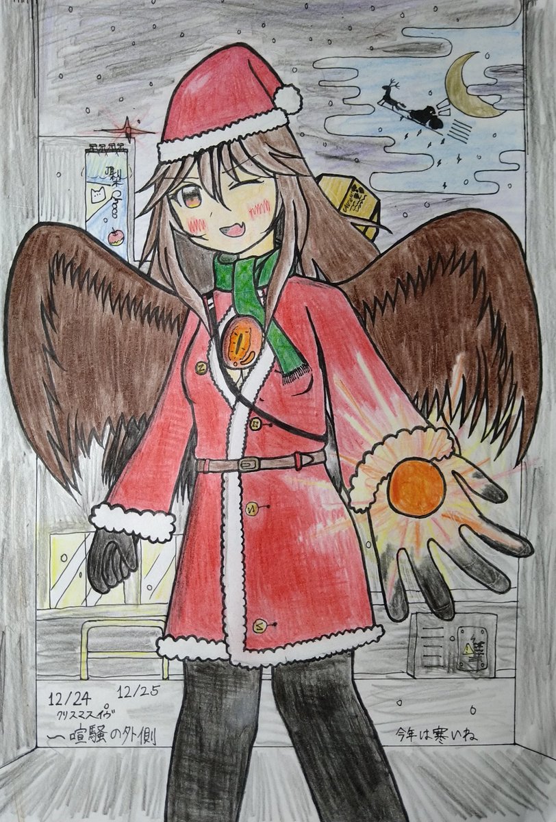 16 45 #霊烏路空 #お空 #クリスマス #東方Project #イラスト #イラスト練習中 #アナログ クリスマスお空(Color ver.) 「ここにいると寒いでしょ、ほらこれ(核融合の欠片(星))使って暖まって!」 22/12/25 19:00