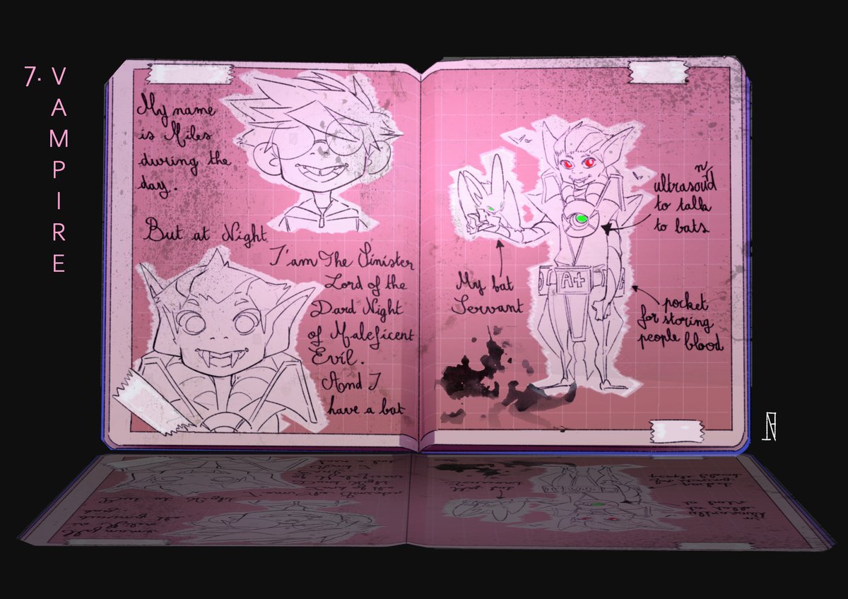 A little boy who dreams of becoming a vampire. He has a secret notebook! DAY 7: VAMPIRE #art #sketch #doodle #oc #originalcharacter #digitalart #conceptart #illustration #anime #manga #draw #drawing #ink #Inktober #witchtober #witchtober2021 #inktober2021 #inktober2021day7