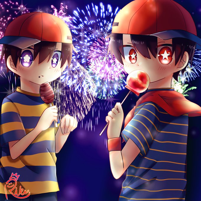 #MOTHER午後のお絵描き一本勝負 #MOTHER #EarthBound #ニンテン (めっちゃ遅刻した+15m延) 🏮帰り道、ふと見つけたお祭りで🏮