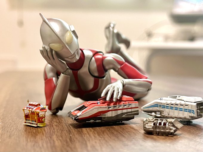 スケールを統一したジャンルミックス遊びは楽しい😊 玩具で遊ぶウルトラマンのようで、スケールはほぼ同じなので、実際この比率です😂光の巨人でっか💦 #オモ写