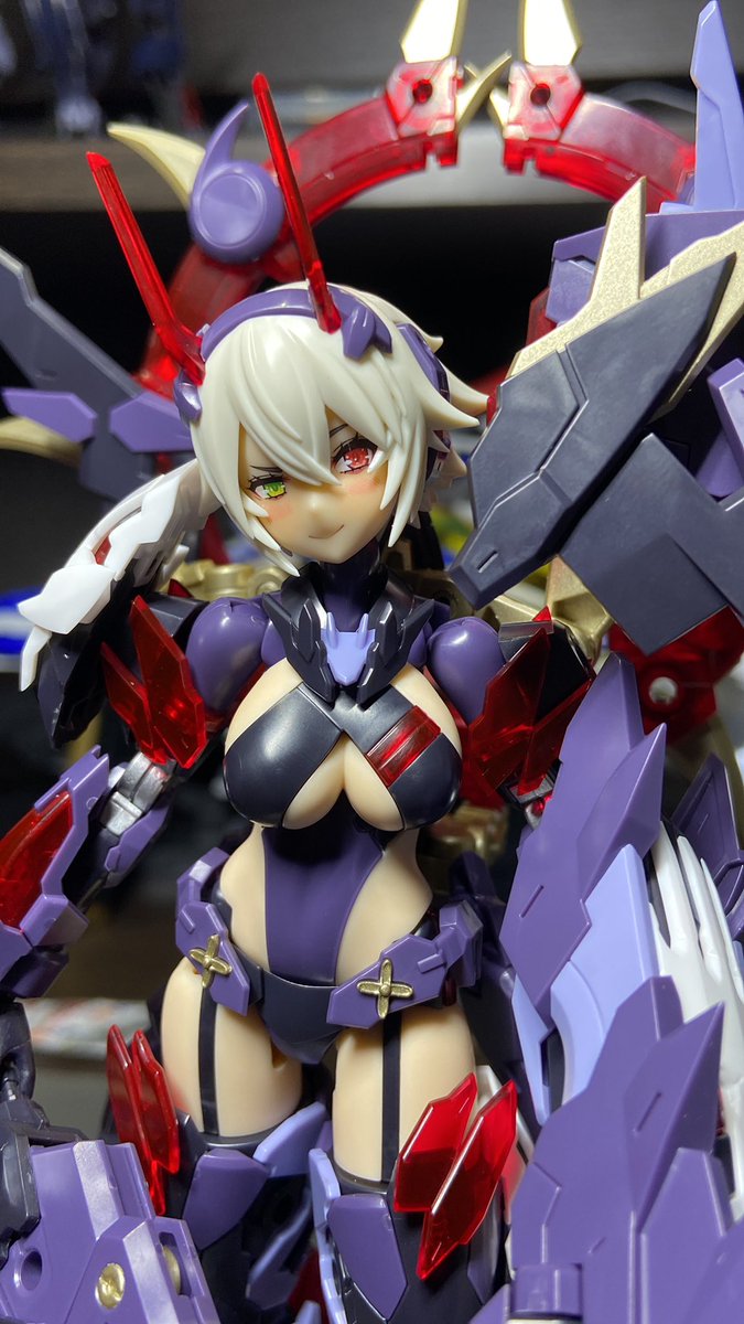 3 18 大鎌だけライトガンメタルでスプレー塗装 金属感があってすこ マントの接続は説明書通りではなくエクスキューショナーbrideのを採用 入ってるランナー一緒だからできるね しいたけ目もすこだけど目隠れもすこ #メガミデバイス 22/10/13 02:05