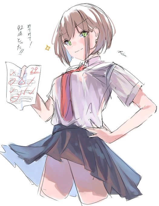 2日目 赤点なのに見間違えてるのかめっちゃテストの点数を自慢してくる隣の席の子らくがき。💯 #イラスト #らくがき #イラスト好きな人と繋がりたい #絵描きさんと繫がりたい #絵柄好みって人にフォローされたい #女の子
