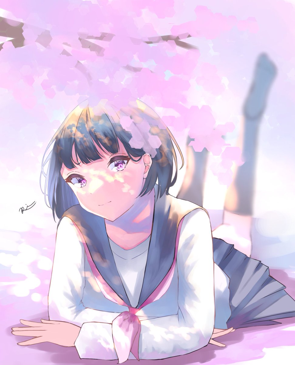 ねぇ、一緒に桜見よ?🌸 💙🧡💛💓 #イラスト #イラスト好きさんと繋がりたい #春 #桜 #絵描きさんと繋がりたい #絵柄好みって人にフォローされたい #illustration #artwork