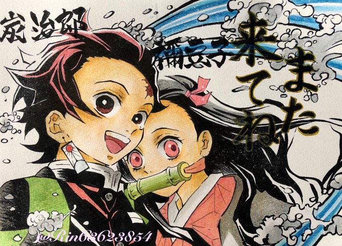 バイト先の居酒屋トイレに貼っています🏮だいぶ前に描いたのですが色々とミスっているので初お披露目です(><)💦 #禰󠄀豆子 #炭治郎 #鬼滅の刃好きな人と繋がりたい #アナログイラスト #鬼滅の刃ファンアート #kimetsu #鬼滅の刃絵描きさんと繋がりたい #色鉛筆画 #鬼滅の刃