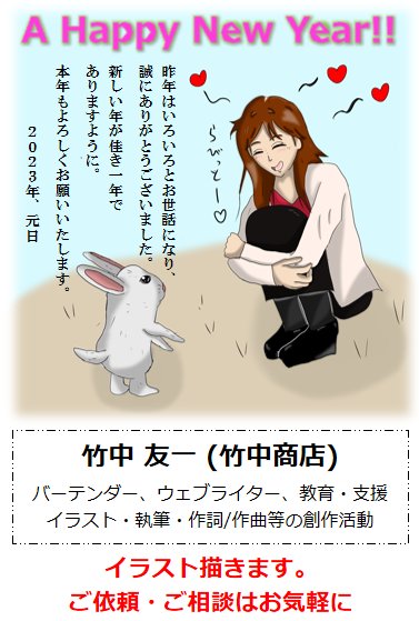新年明けましておめでとうございます。 今年もよろしくお願いします。 昨年はバーとライターで忙しくさせていただきました。 今年はイラスト活動をもう少し拡張したいと思います。 重ねて、どうぞ本年もよろしくお願いいたします。 #新年 #年賀状 #イラスト #うさぎ年
