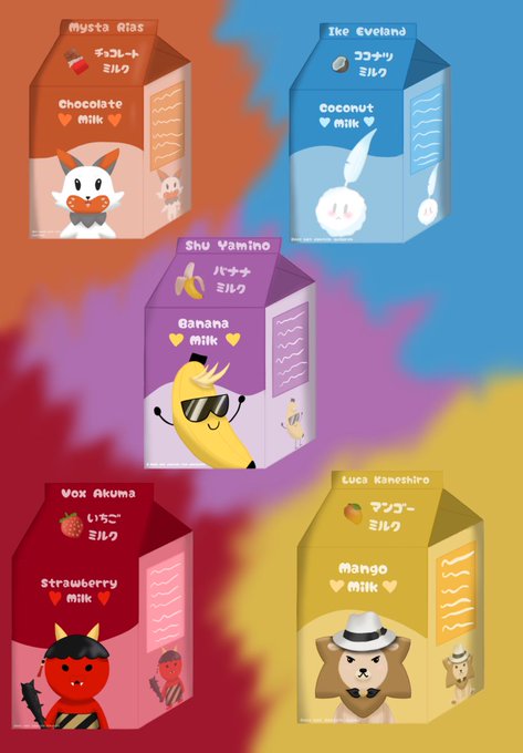 Luxiem milk carton designs! Which milk would you buy? I’m considering making these into stickers so let me know what you think! #Akurylic #drawluca #Ikenography #MystaArt #YaminoArt