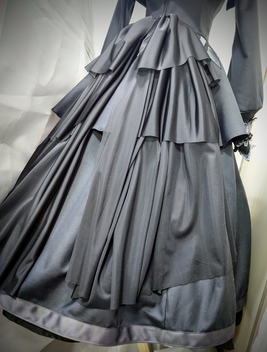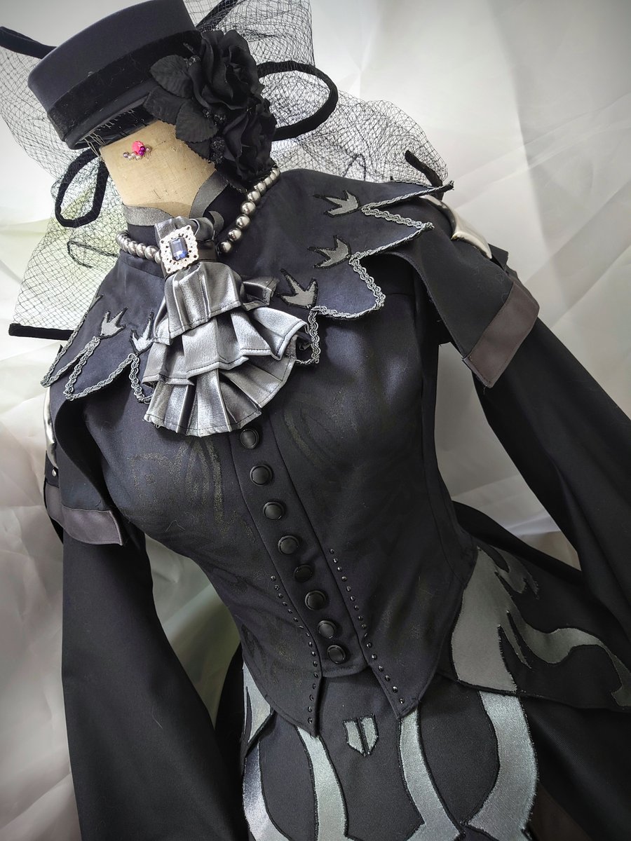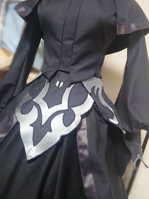 第一再臨できました報告! 同色の統一感あるデザインなので、再臨の中で一番難しかったかも。 原典読んでみて、とにかく着飾る文化っぽかったので喪服ではあるものの、装飾は派手なほうが良いかと思って生地はシャンタンとか、小物は貝パールとか使ってみた(個人的解釈 3枚目はバックスタイル。